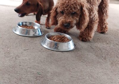 Organizamos a los perros según su temperamento para formar grupos donde puedan jugar y disfrutar juntos. Además de alimentarlos en el horario establecido, nos aseguramos de darles regaloneos y cariño al menos dos veces al día, además de momentos de juego o paseos para mantenerlos relajados y felices.